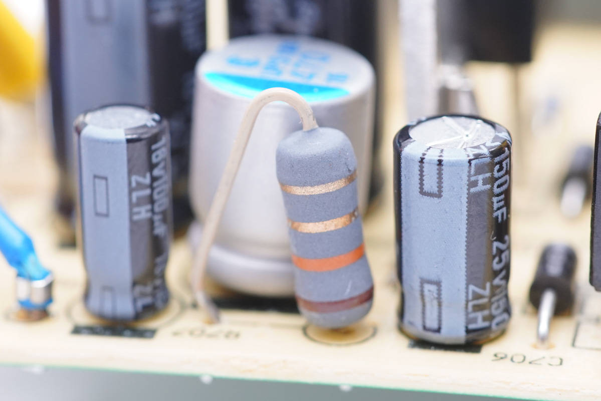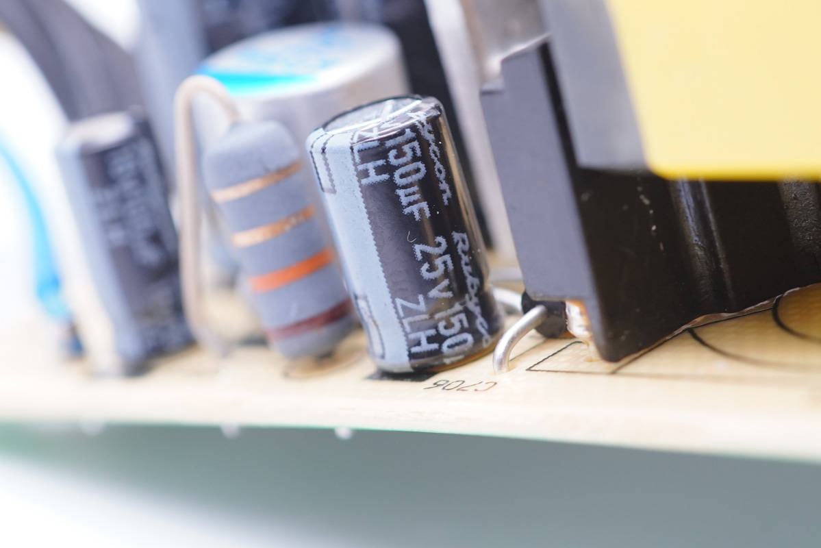 滤波电解电容特写,来自红宝石,规格为25V 150μF,ZLH长寿命系列。