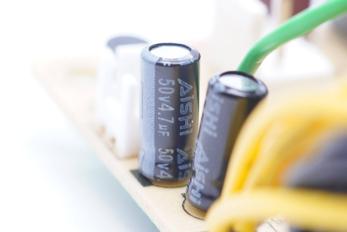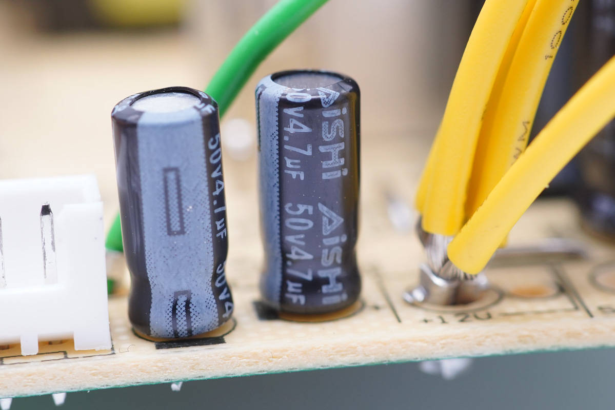 风扇插槽旁边是两颗小电容,这颗来自艾华,规格为50V 4.7μF。