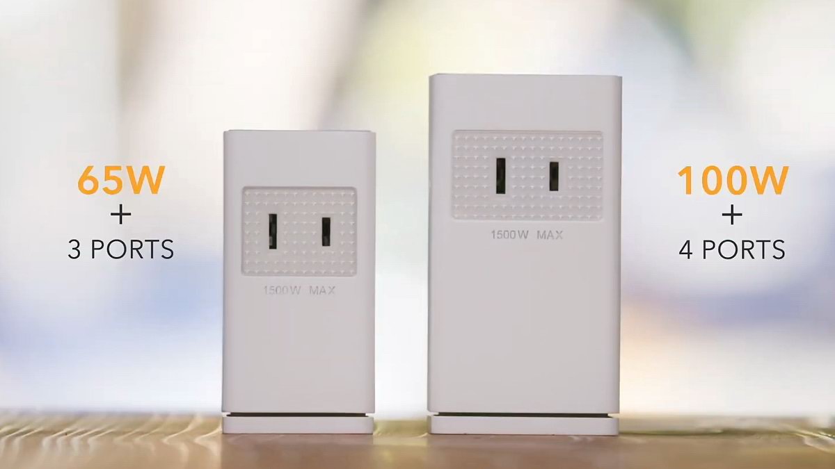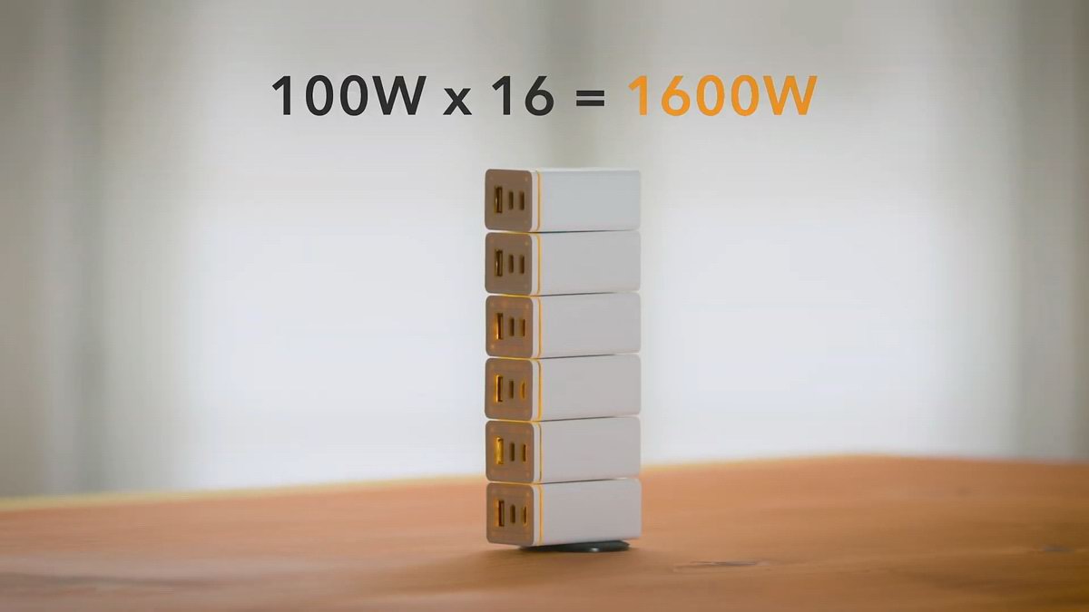 HyperJuice堆叠型氮化镓充电器将大功率小体积的氮化镓充电器与插座优势结合,支持65W、100W大功率PD快充输出,并带有多个输出口可以服务多设备同时充电,另外基于背后的交流接口还能多个充电器堆叠使用,并可以为家用电器提供1500W交流插座功能,不与电器争抢插座。