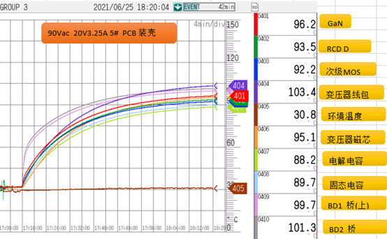 90Vac输入,65W输出发热情况。