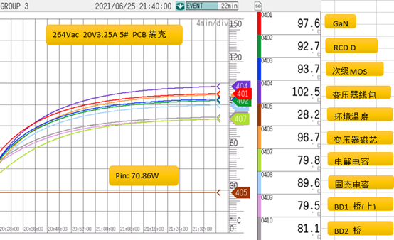 264Vac输入,65W输出发热情况。