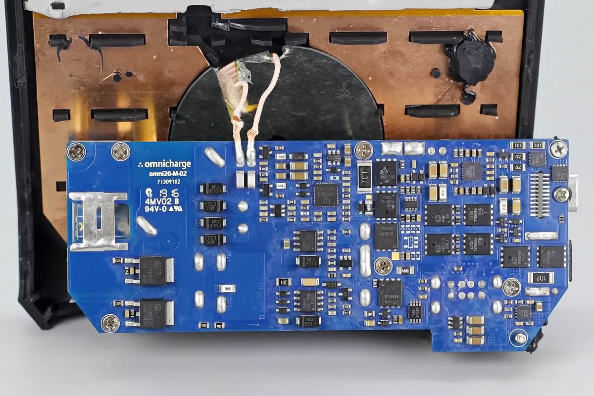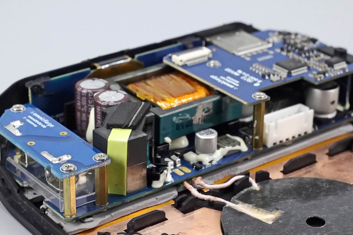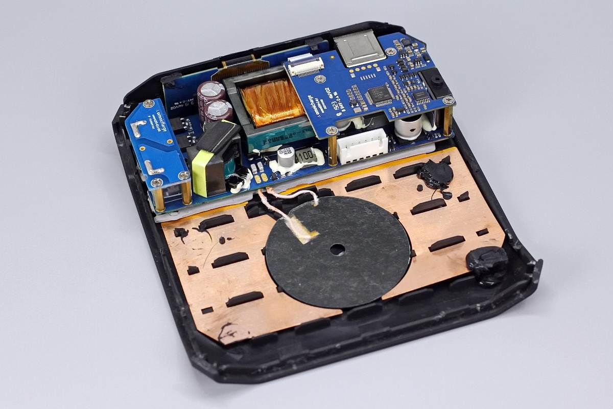 Omni 20+充电宝拥有DC、USB-A/C接口以及AC输出插口。其中DC、USB-C口均支持双向快充,最大功率可达100W。AC插口支持100W交流输出,再一对比此前拆解的储能电源的逆变器模块,虽然功率比不上,但能在如此小的多合一充电宝里塞入逆变输出电路,着实让人觉得不可思议。那下面就来看看这款产品的内部是如何设计的。