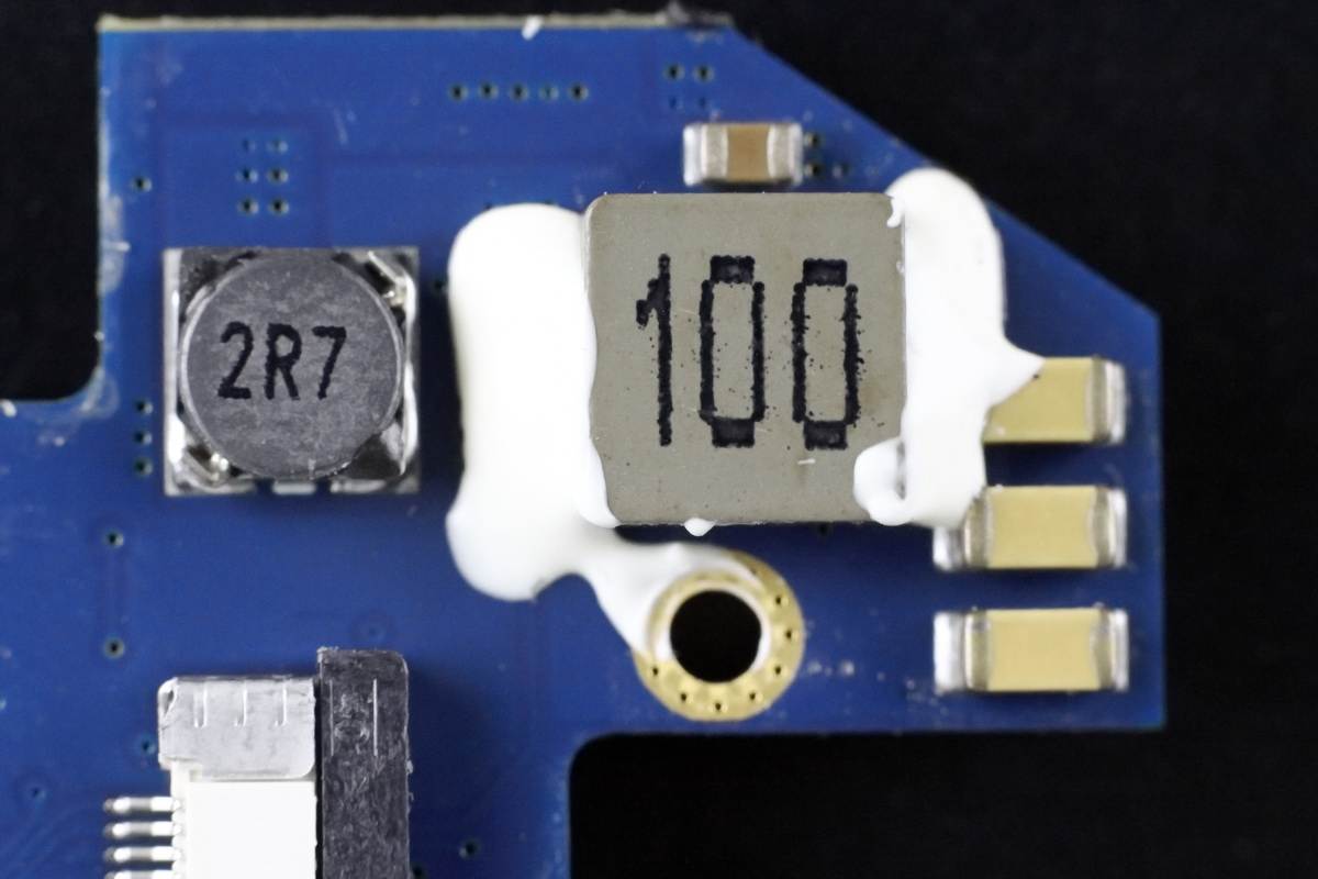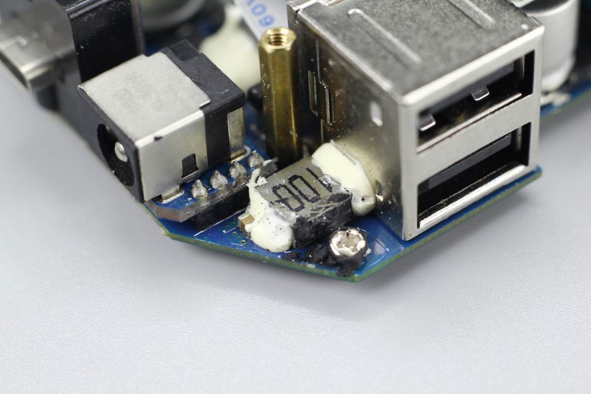 旁边的合金电感打胶固定,用于DC和C口输入输出升降压。