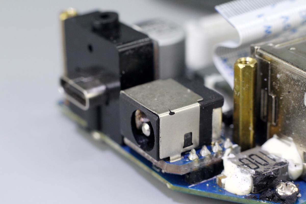 USB-C母座使用小板垂直焊接,小板打胶加固,同时母座也套有一个塑料罩密封。