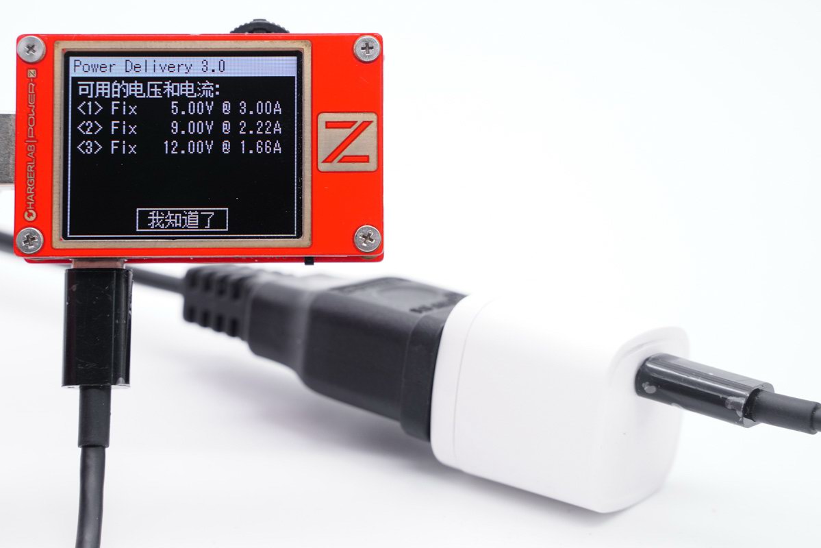 使用POWER-Z KT002 USB测试仪读取PDO报文,充电器基于PD3.0快速充电标准开发,带有5V3A / 9V2.22A / 12V1.67A三个固定电压档,其中9V2.22A正是iPhone 12系列20W快充需求的电压档,符合半小时充入50%电量的性能需求。