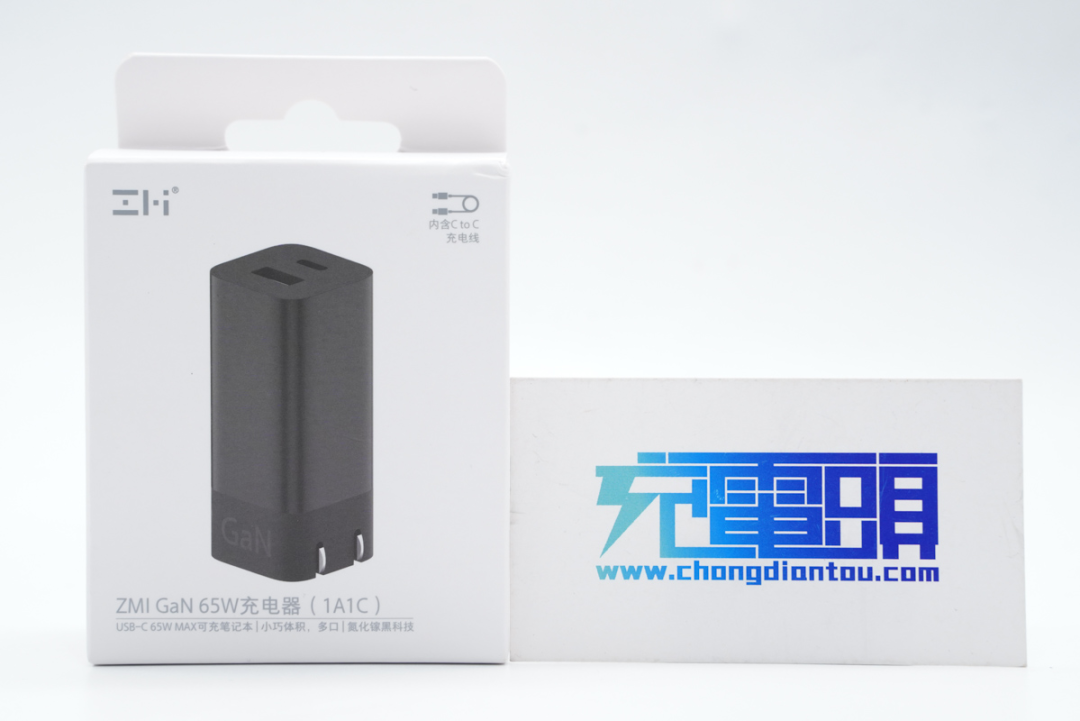 紫米65W双口氮化镓充电器造型采用亮黑加磨砂黑的外观配色,满满的ZMI紫米风格,GaN字样也说明了充电器采用了氮化镓技术。