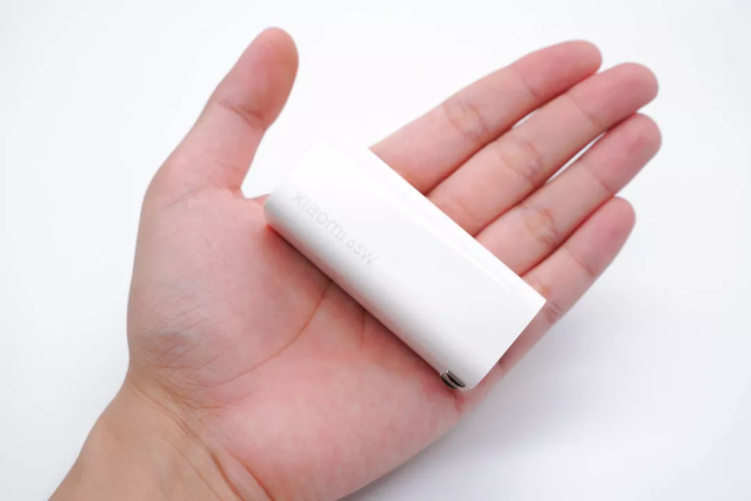 三围参数为71.73x31.13x31.13mm,充电器的体积约为69.51cm³,以最高输出65W计算,功率密度约为0.93W/cm³。