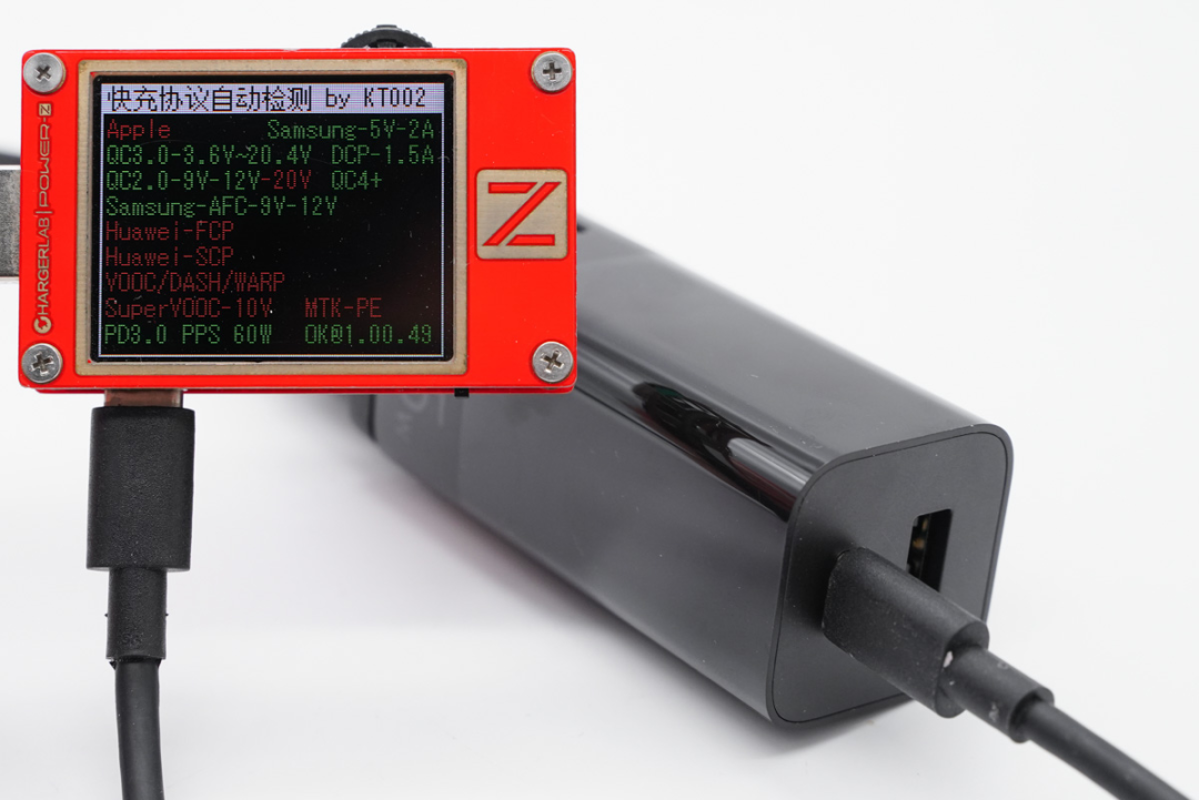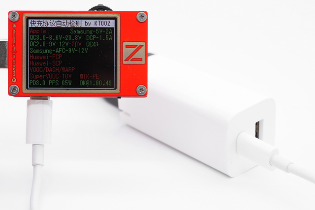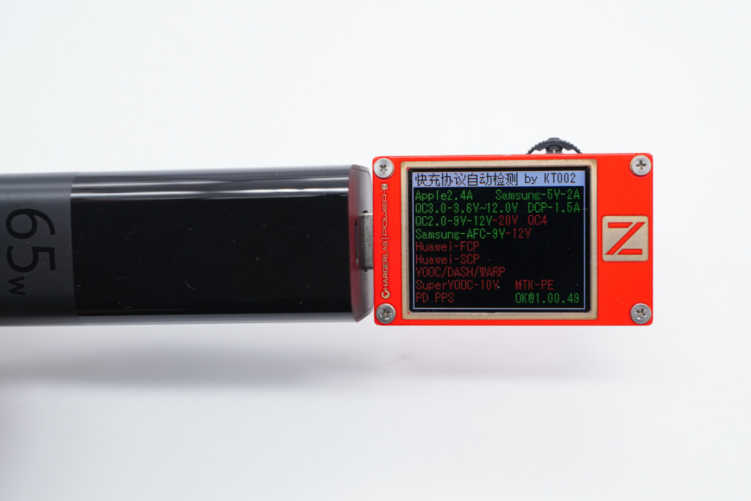使用ChargerLAB的POWER-Z KT002读取USB-C的快充协议,实测支持PD、PPS、Apple2.4A、QC2.0、QC3.0、QC4+、AFC快充协议。