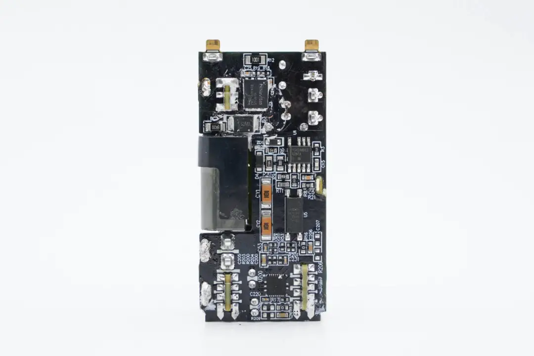 充电器采用高频QR开关电源宽范围输出,USB-A口同步整流升降压,两个接口使用一颗协议芯片控制输出电压的设计架构,电源架构为准谐振反激。