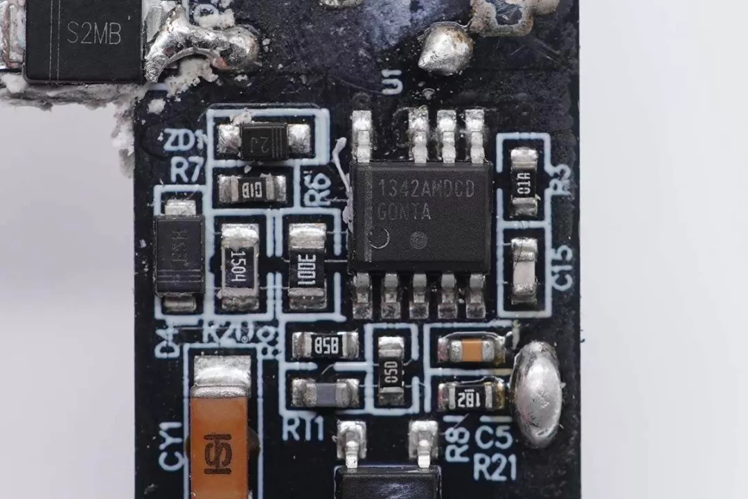 开关电源主控芯片采用ON安森美NCP1342,这是一颗高频准谐振反激初级PWM控制器,内置主动X2电容放电和多重完善的保护功能,具有超低的待机功耗。