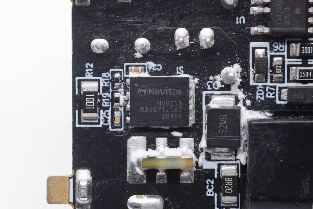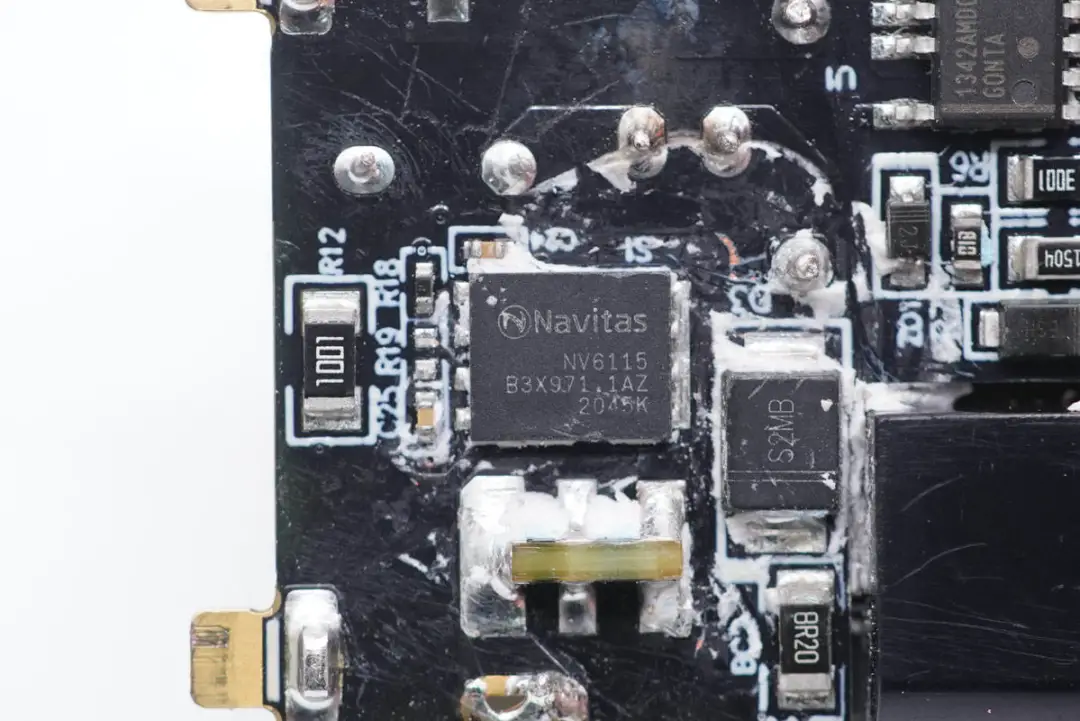 紫米65W双口氮化镓充电器初级开关管,同样采用纳微NV6115氮化镓功率芯片。