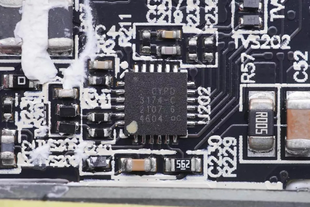 紫米65W双口氮化镓充电器USB PD快充协议芯片,同样采用赛普拉斯CYPD3174。