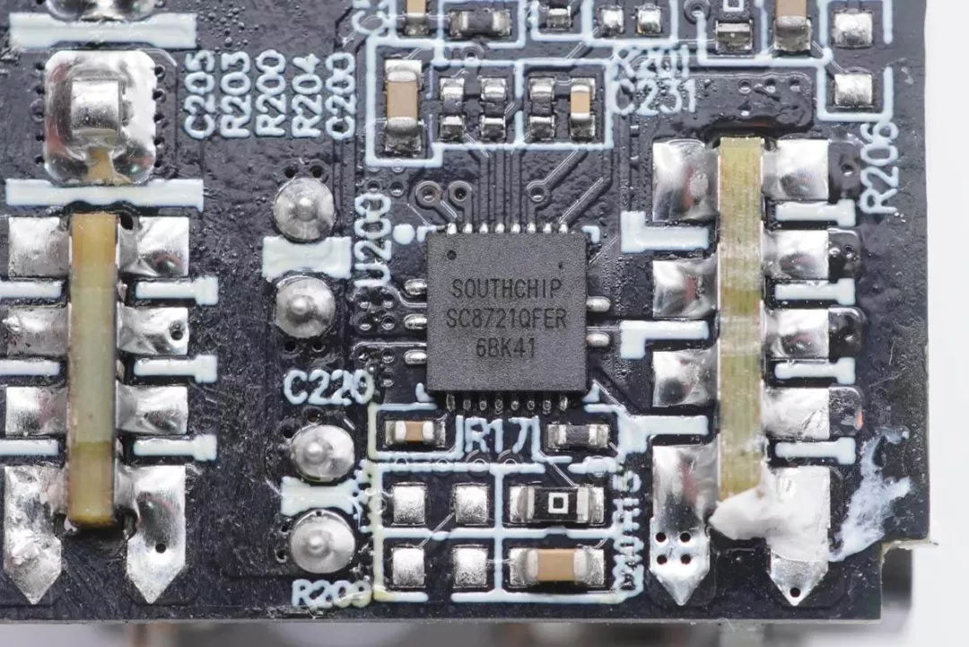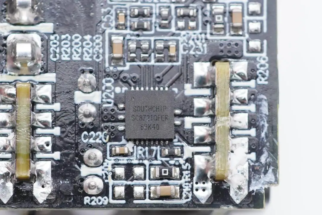 紫米65W双口氮化镓充电器USB-A口同步升降压转换器,同样采用南芯半导体SC8721。