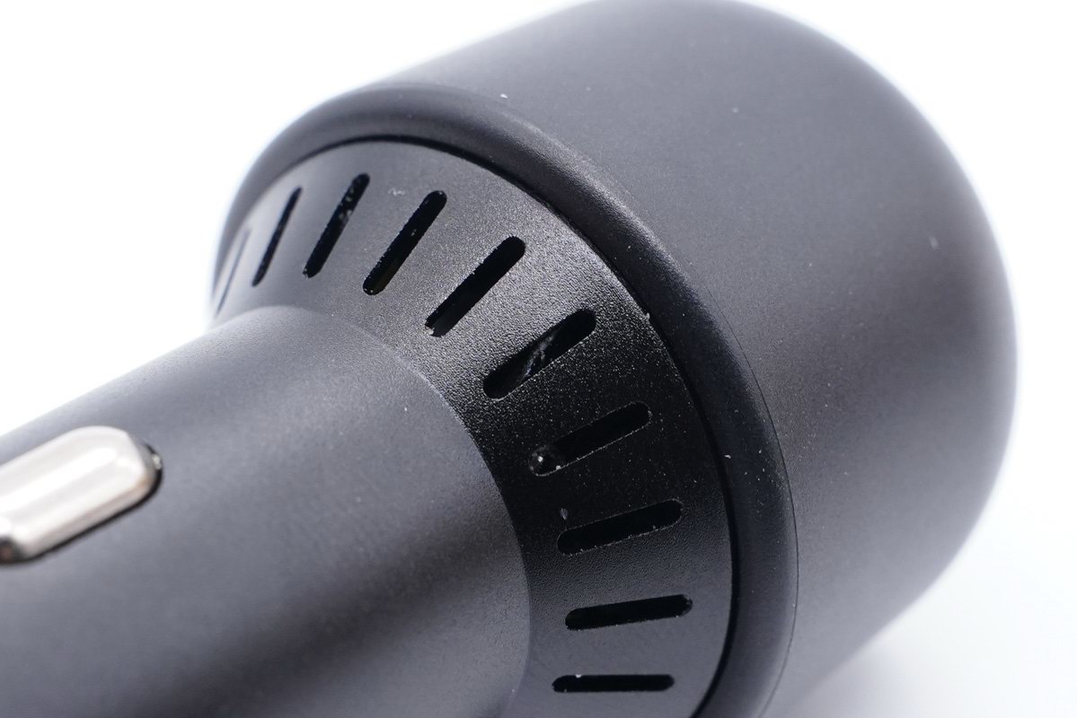为了让96W超大功率输出稳定运行,IBD 95W 2C1A车载充电器颈部处采用了条形开孔设计,让空气对流达到散热目的。