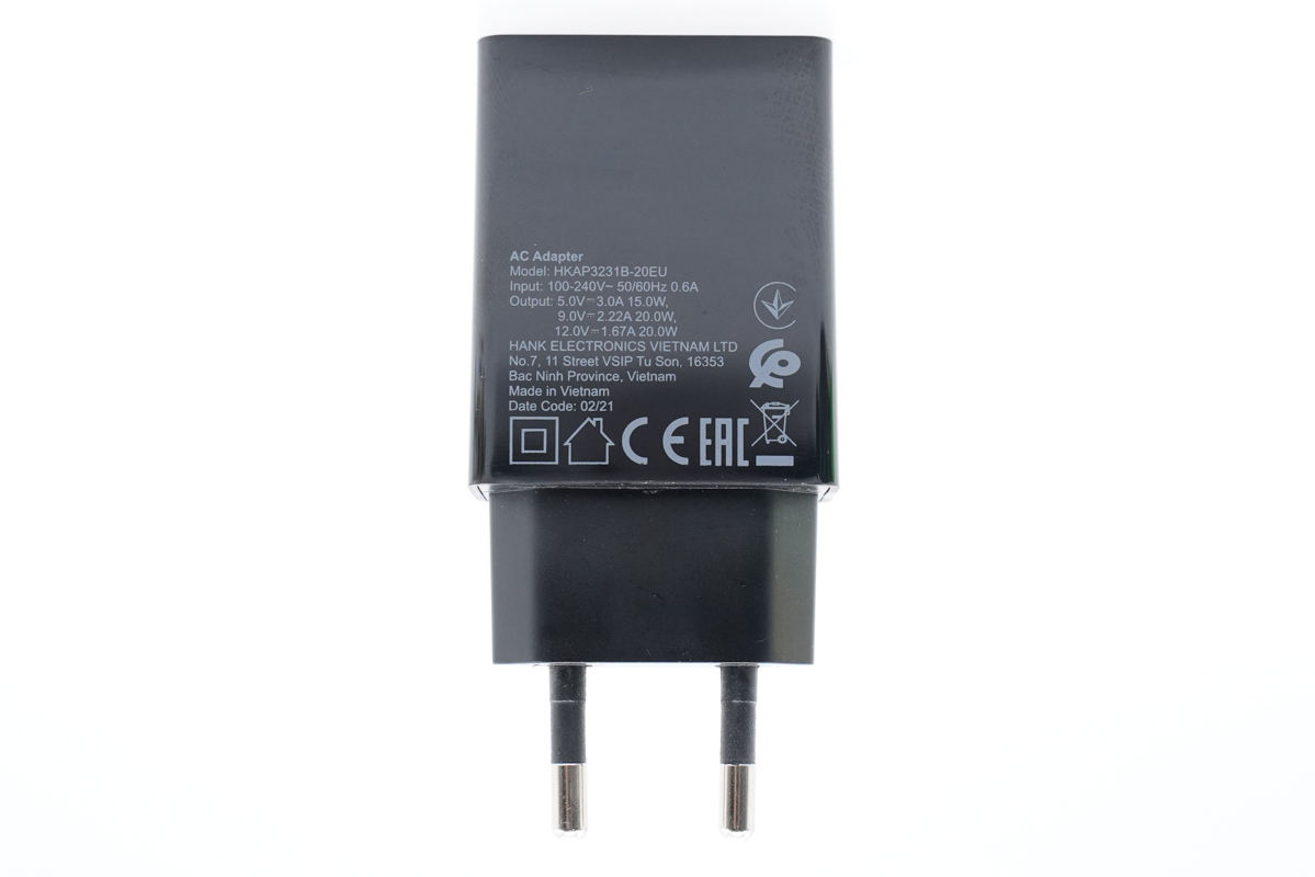 型号:HKAP3231B-20EU 输入:100-240V~50/60HZ 0.6A 输出:5V3A、9V2.22A、12V1.67A 产品已经通过了CP、CE和EAC认证。
