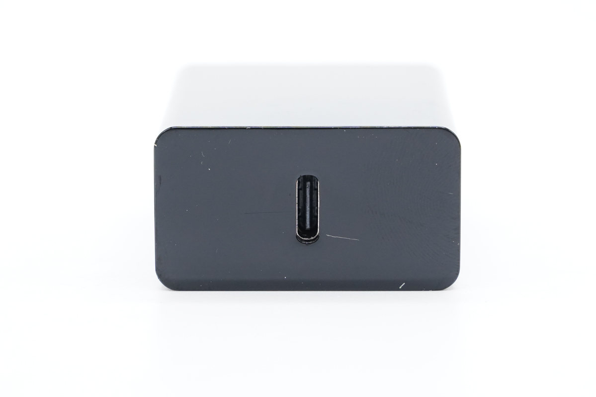 输出顶面中心设有USB-C接口,黑色胶芯不露铜。