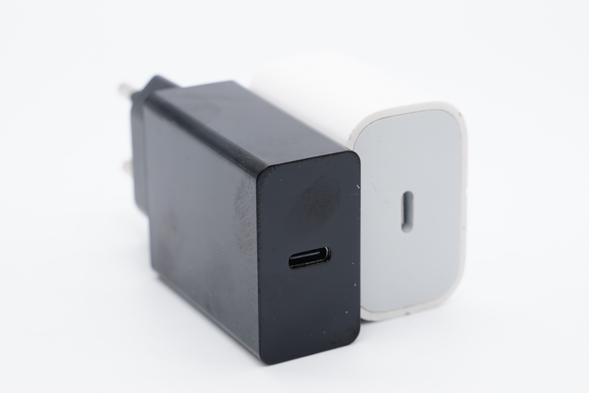 机身比苹果20W充电器的长一点,不过也更加扁平。