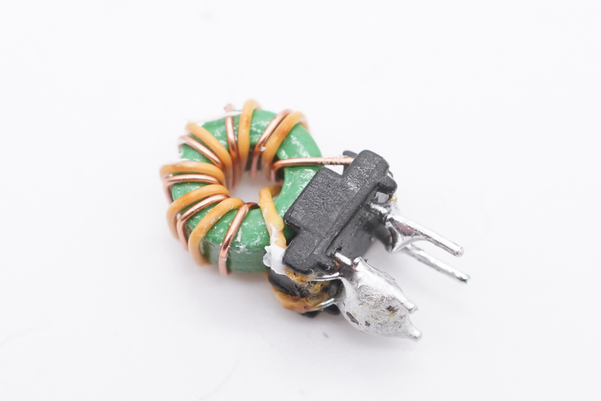 工字电感外套热缩管保护。