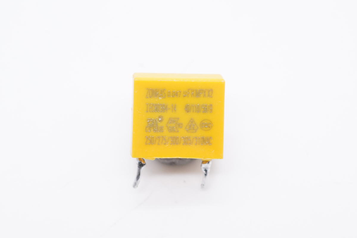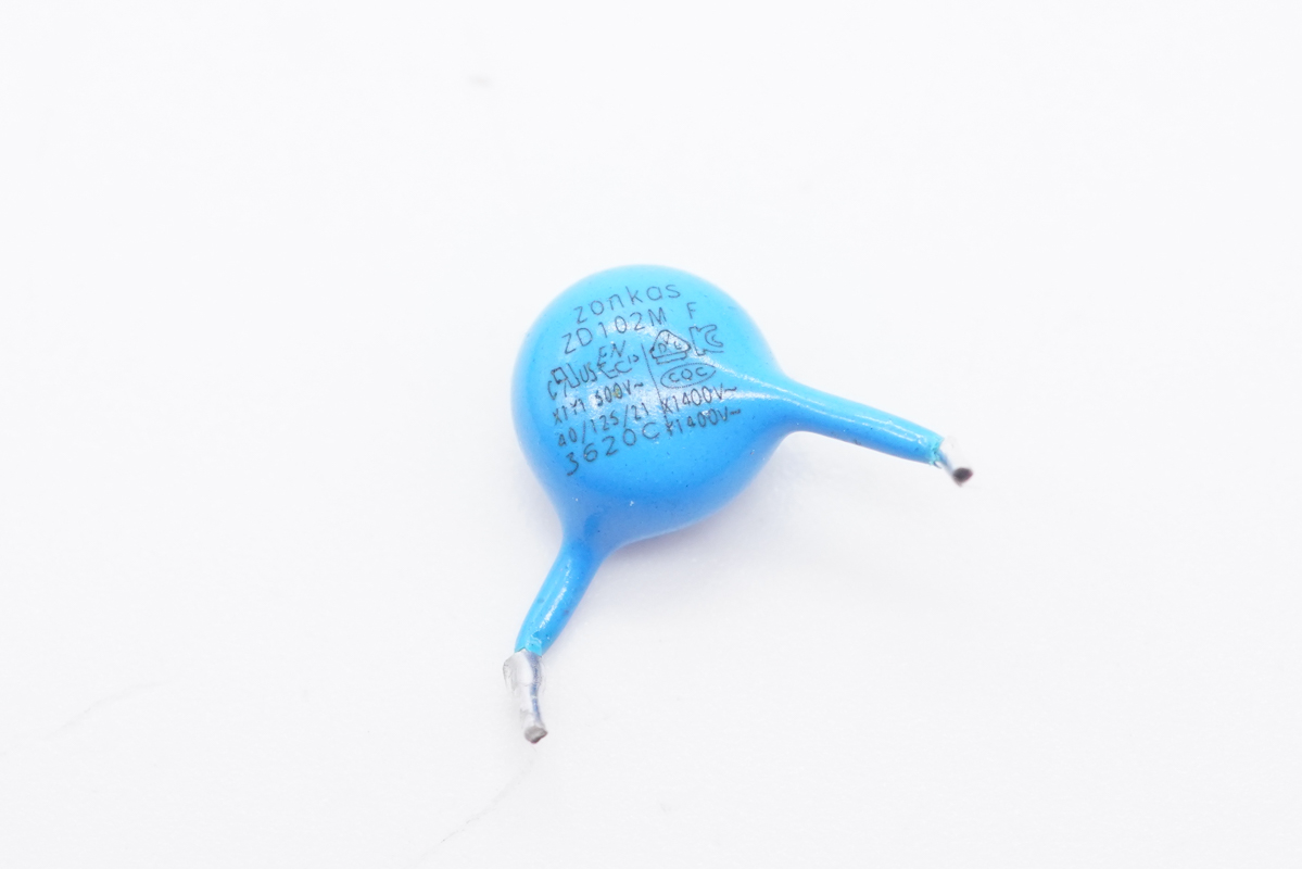 蓝色Y电容特写,用于输出抗干扰。