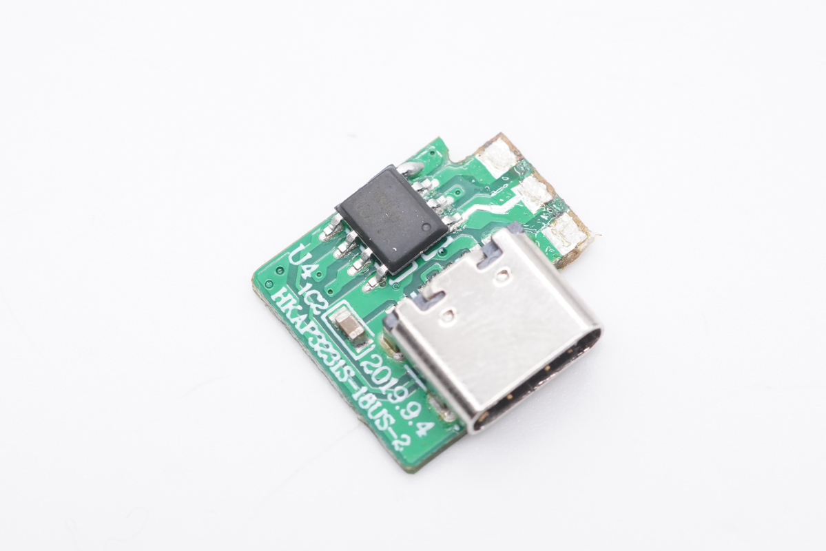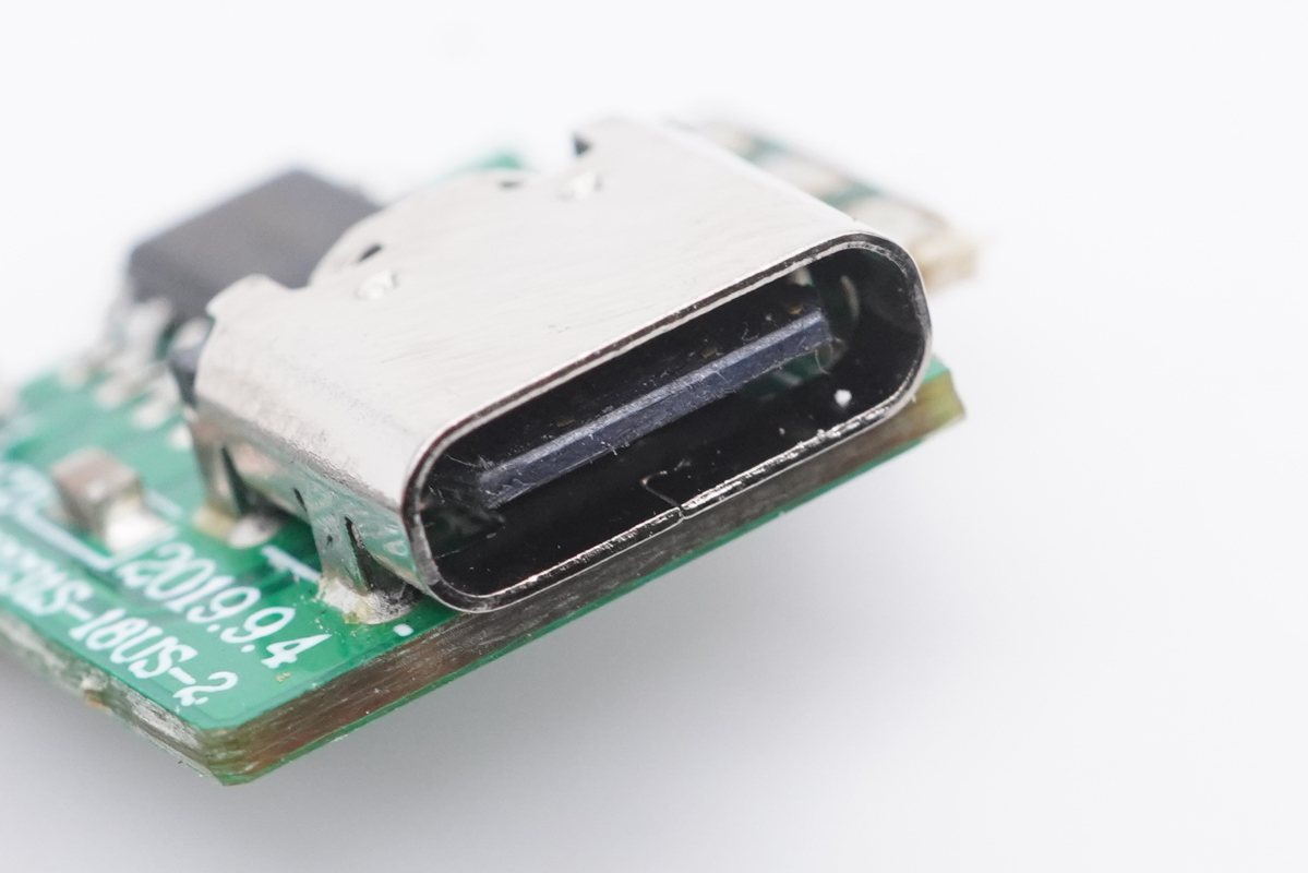USB-C母座特写,过孔焊接。