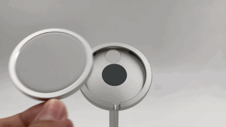 倍思这款无线充采用圆盘造型设计,主体外壳为铝合金材质,顶部是透明玻璃板,可直接观察无线充内部PCB板上的芯片、电容、电感等器件,设计十分新颖,侧面另一端有一颗LED指示灯,样式可以说非常的独特。
