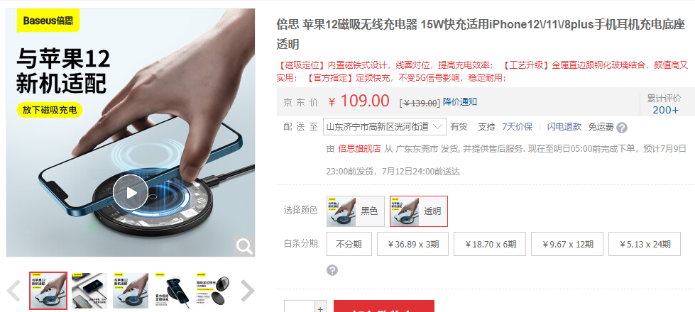 Baseus倍思 透明磁吸无线充