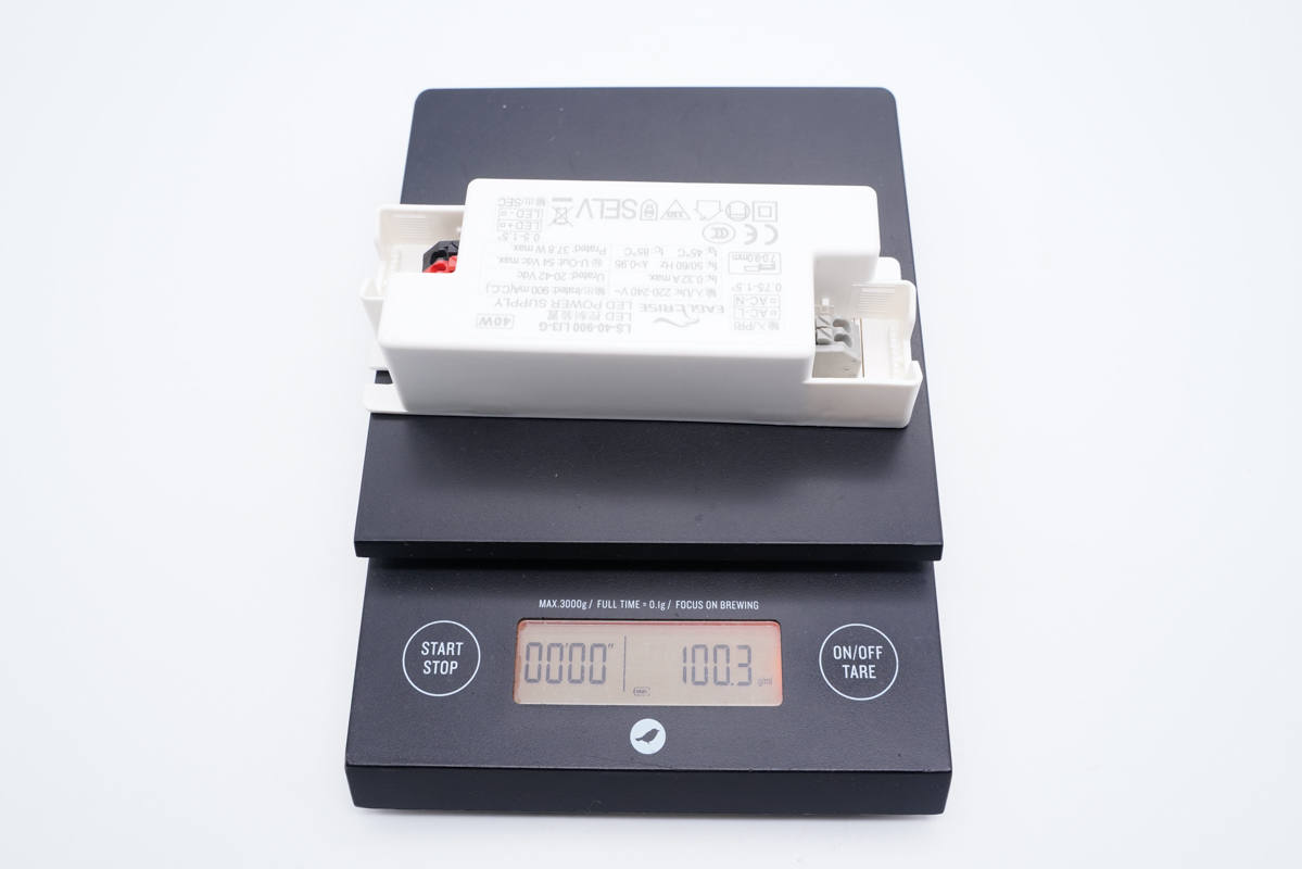 伊戈尔40W LED驱动电源采用PC材质白色外壳,表面哑光,设计相当简洁。