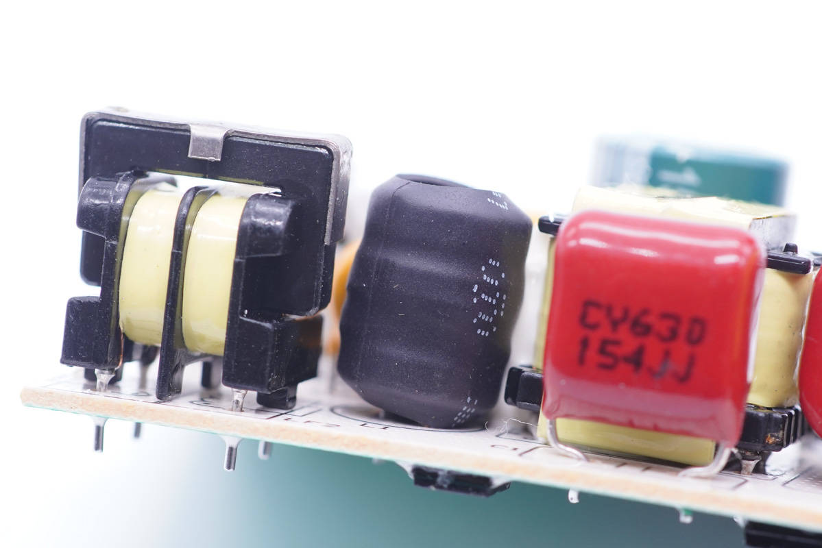 安规X电容容量0.22μF,共模电感双线绕制用于滤除EMI干扰。