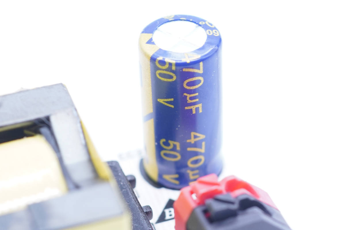 伊戈尔这款LED驱动电源顶部外壳卡扣封装,输入输出接口母座压接设计,整体来看是为了日后维修、更换进行设计的。作为一款LED驱动电源,输入端使用PFC电路,通常小功率开关电源都不使用PFC,而使用PFC电路可以提高功率因数,转换效率,并且减小初级电容容量,可见伊戈尔在设计上更为讲究。