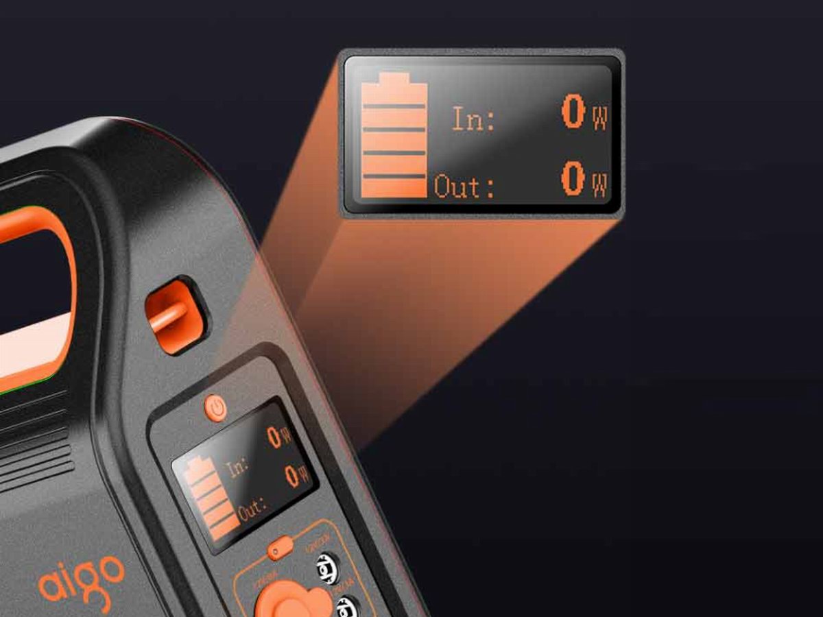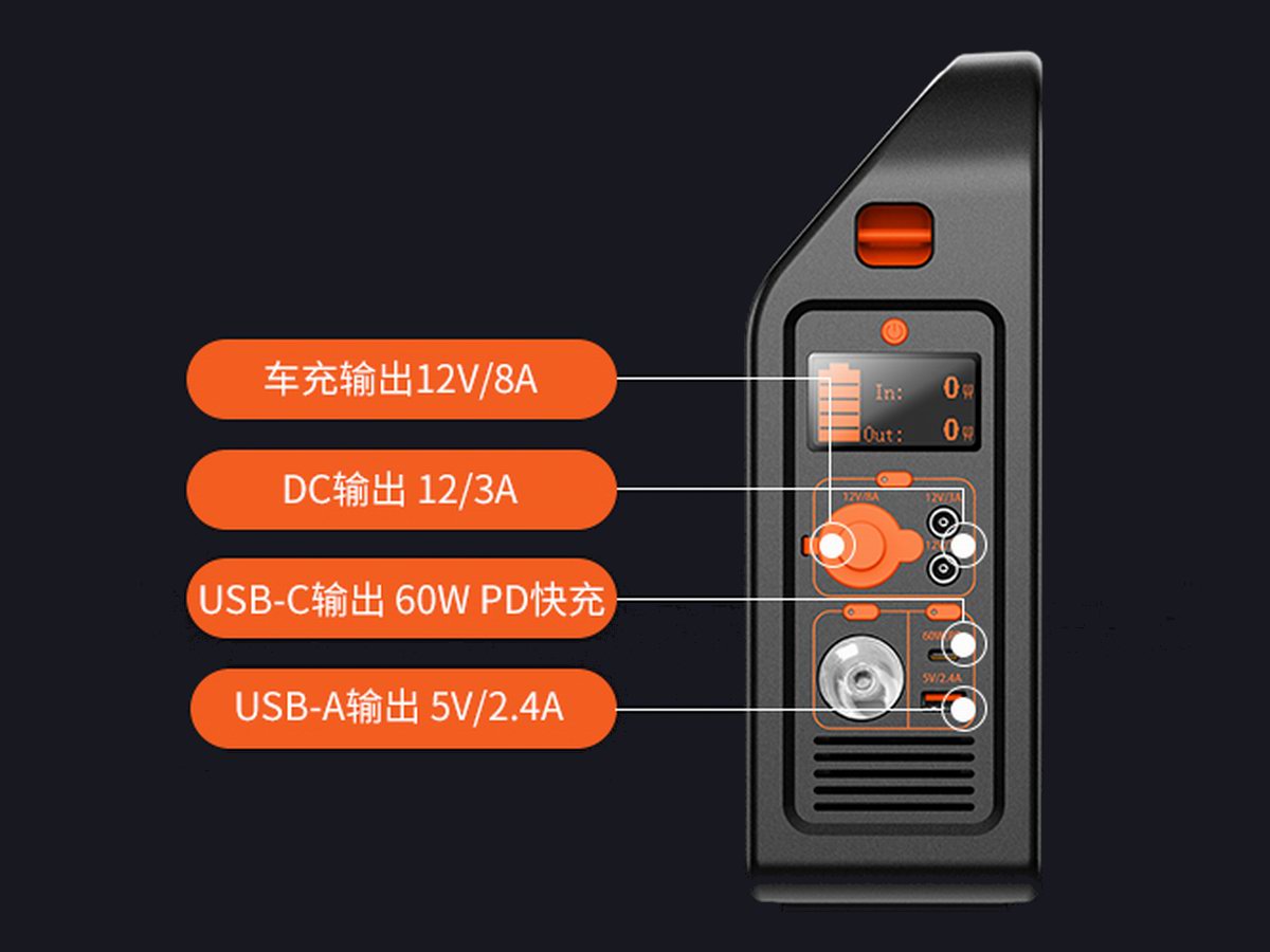 为方便用户随时掌握户外电源工作状况,右侧集成了一块LED多功能显示屏,上面显示了剩余电量、输入功率、输出功率,一眼即可获取当前设备状态,提前做好充电计划应对不时之需。