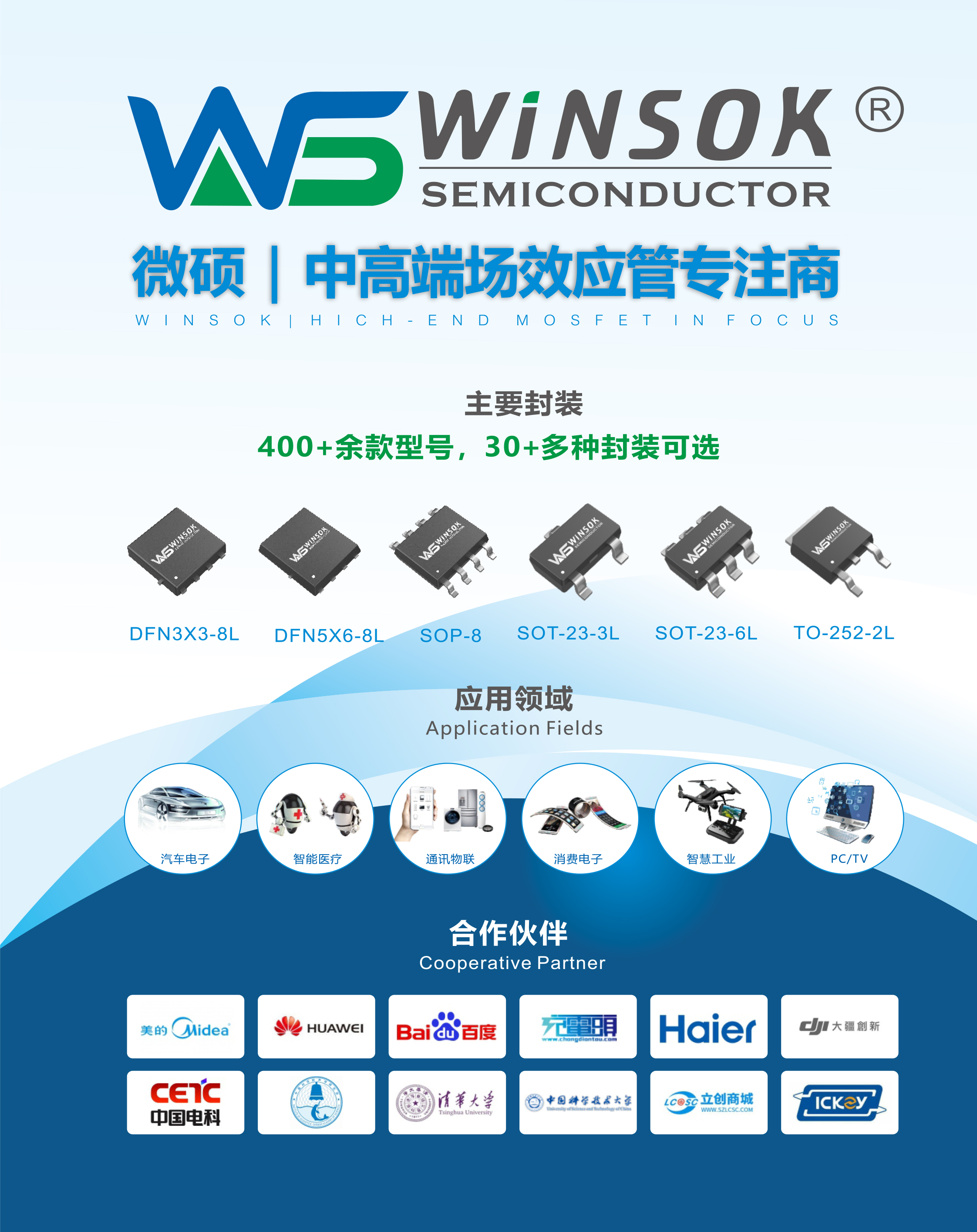 冠华伟业目前代理WINSOK(微硕)品牌的MOSFET 400余个型号,30多种封装可选,5000万级现货库存,并拥有一支专注电子元器件15年的专业FAE技术团队,为客户提供技术服务支持。