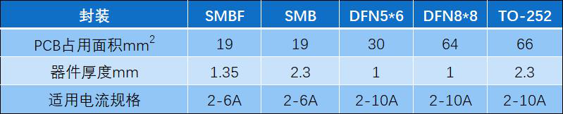 基于不同功率的需求,客户可以灵活地选用3A/4A的器件,或者并联使用(碳化硅肖特基二极管的VF为正温度系数,适合并联)。总的来说,从厚度以及PCB占用面积来看,SMBF的尺寸更契合PD“小轻薄”的特点。