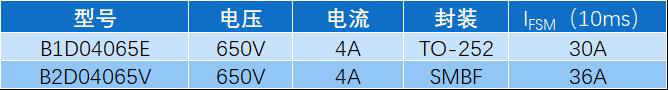 表3:B1D04065E和B2D04065V浪涌电流能力IFSM对比