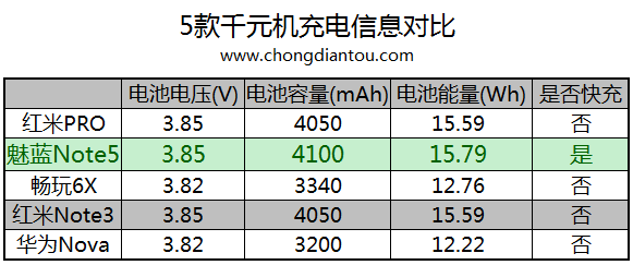 5款手机电池信息如下,其中只有魅蓝Note5支持快充。