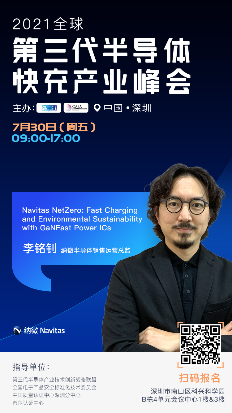 纳微半导体(Navitas Semiconductor)是全球第一家氮化镓功率芯片公司,成立于2014年。纳微半导体拥有一支强大且不断壮大的功率半导体行业专家团队,在材料、器件、芯片设计、应用、系统和营销方面拥有行业领先的经验,此外,纳微半导体创始人拥有超过300项专利。氮化镓功率芯片集成了氮化镓功率器件与驱动、控制和保护功能,为移动、消费、企业、电动车和新能源市场提供更快的充电体验、更高的功率密度和更出色的节能效果。纳微半导体有120多项专利已经颁发或正在申请中。截至2021年5月1日,超过2000万片纳微GaNFast️氮化镓功率芯片已经出货,故障率为零。2021年5月7日,纳微宣布”将通过与 Live Oak II 特殊目的收购公司合并的方式,以10.4亿美元的企业价值上市"。纳微半导体出席2021全球第三代半导体快充产业峰会并发表演讲!