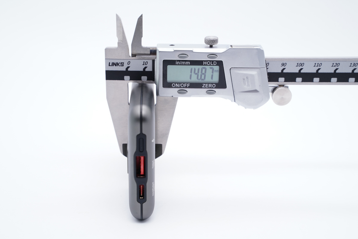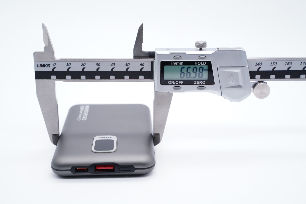 10000mAh版本的三围参数为105.62x66.98x14.87mm,重量184.3g;而20000mAh版本的三围参数为108.5x69.33x26.77mm,重量323.6g。