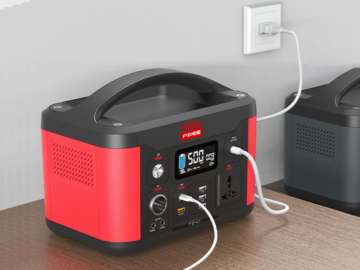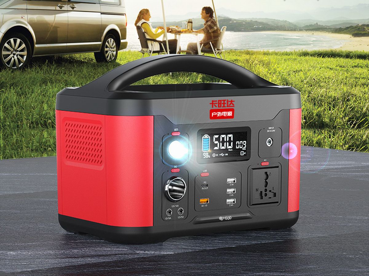 卡旺达电+600户外电源内置626.4Wh电池组,带有一个万用脚交流输出口,支持600W正弦波输出,4A1C USB模块支持60W 双向PD快充,可以DC + PD双口同时输入充电,最快4.5小时充满自身。