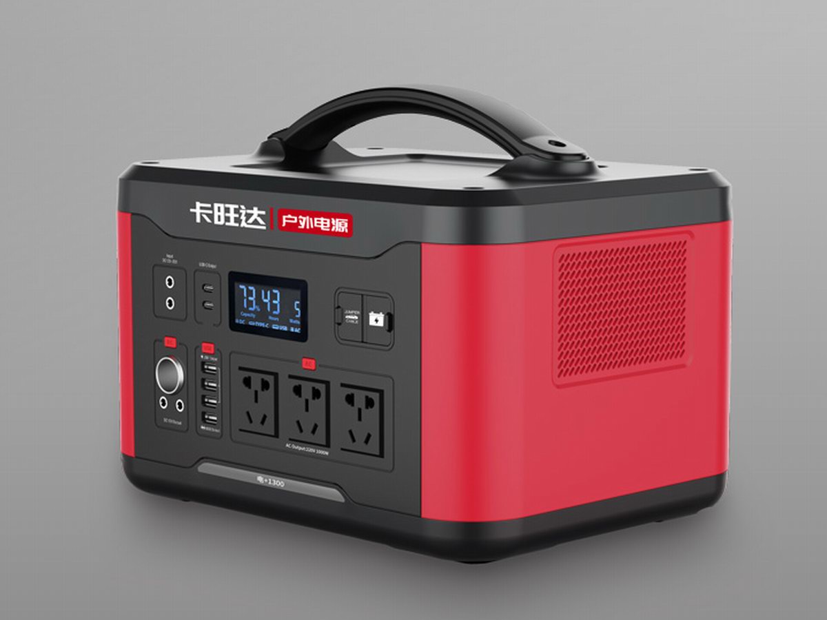 卡旺达电电+1300户外电源,采用1280Wh电池组,带有3个国标2+3交流输出口,支持1000W正弦波输出,4A2C USB模块支持100W PD快充输出,并带有大电流专用接口,可扩充副电池让容量翻倍,并支持汽车应急启动功能。