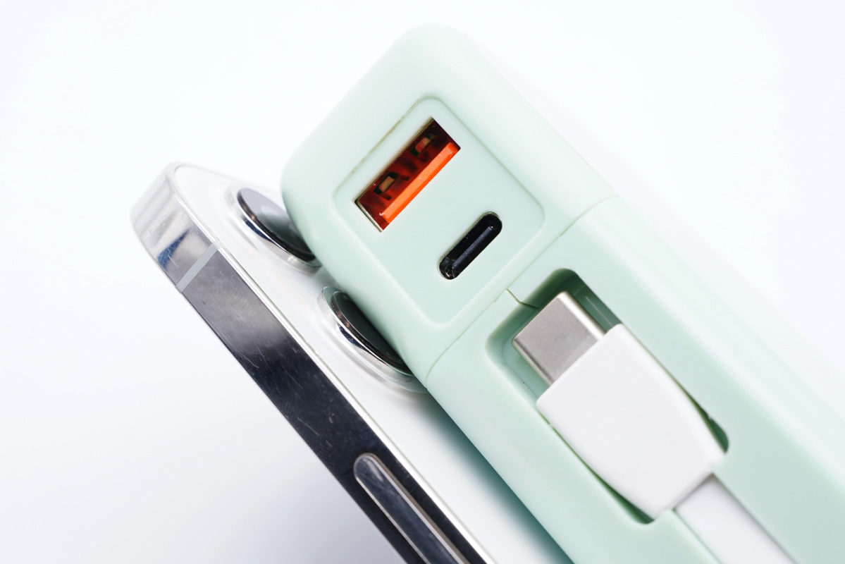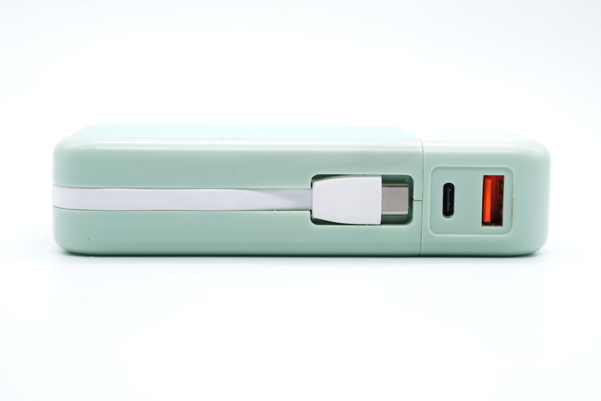 自带C to C快充短线,采用隐藏式设计,使用时取出,短线也刚好适用于户外充电的使用场景,不用的时候就可以收回机身,简单方便。