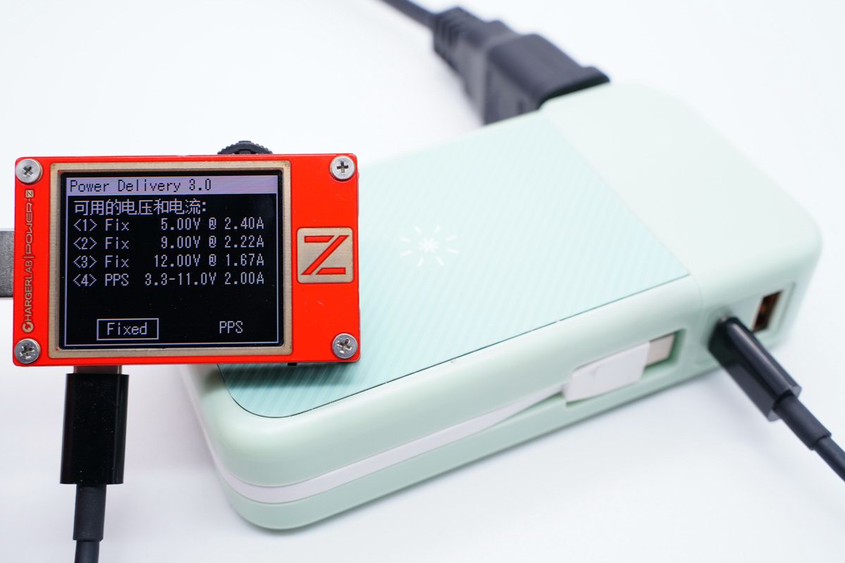 使用POWER-Z KT002 USB测试仪读取PDO报文,基于PD3.0快速充电标准开发,带有5V2.4A / 9V2.22A / 12V1.67A三个固定电压输出档,另外还包含3.3-11V2A一组PPS电压子集,可以适用于更多设备。