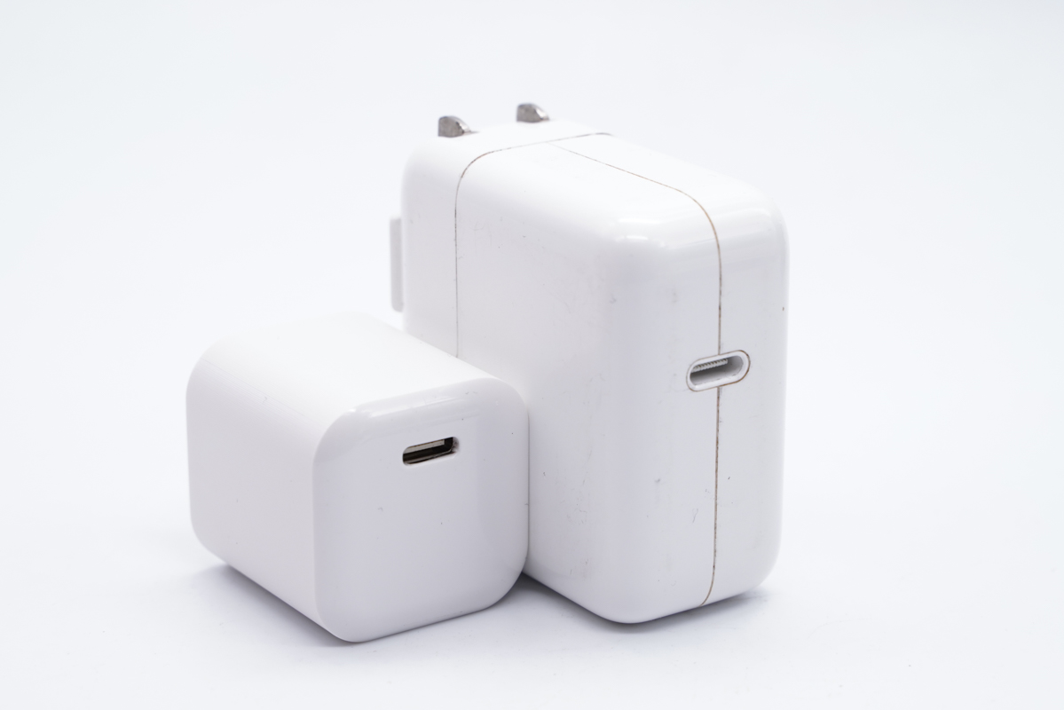 和苹果30W PD充电器放在一起对比,差距十分明显。
