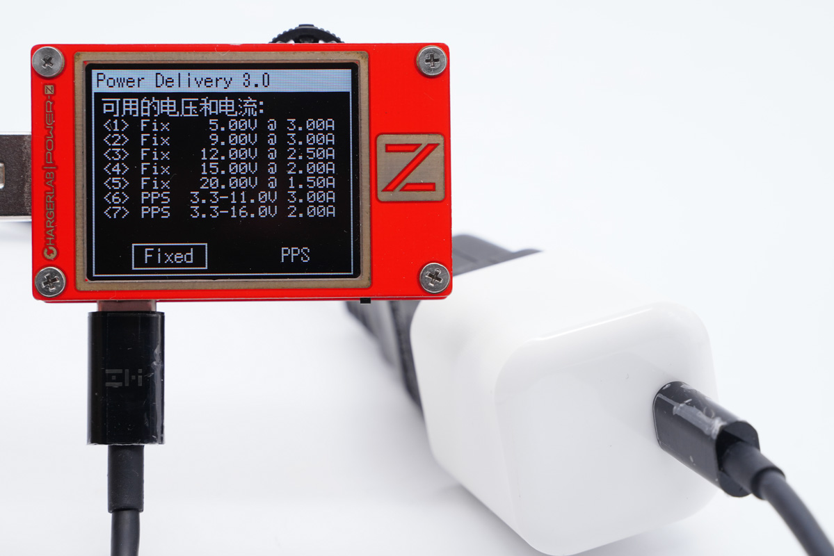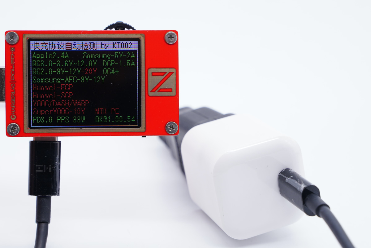使用ChargerLAB的POWER-Z KT002读取充电器的快充协议,支持PD、PPS、Apple2.4A、QC2.0、QC3.0、QC4+、AFC快充协议。