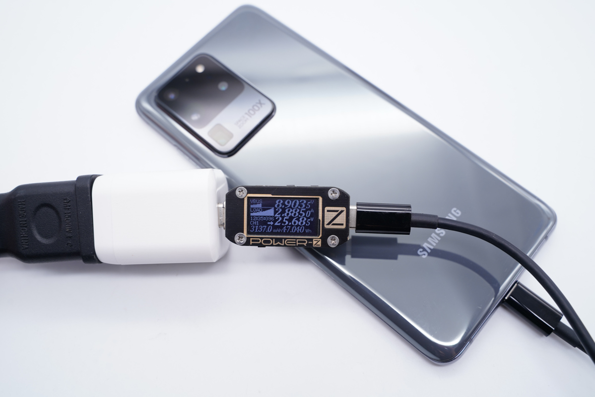 得益于PPS快充的加持,充电器为三星S20 Ultra充电可以提供25W+的快充功率。