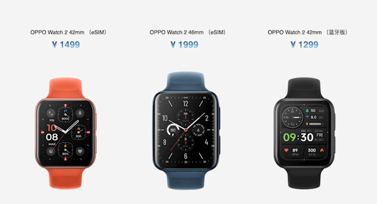 最后是售价环节的公布,OPPO Watch 2系列这次一共发布了三个版本,46mm(eSIM)、42mm( eSIM)、42mm(蓝牙版),蓝牙版除了减少eSIM外,其他功能一致。