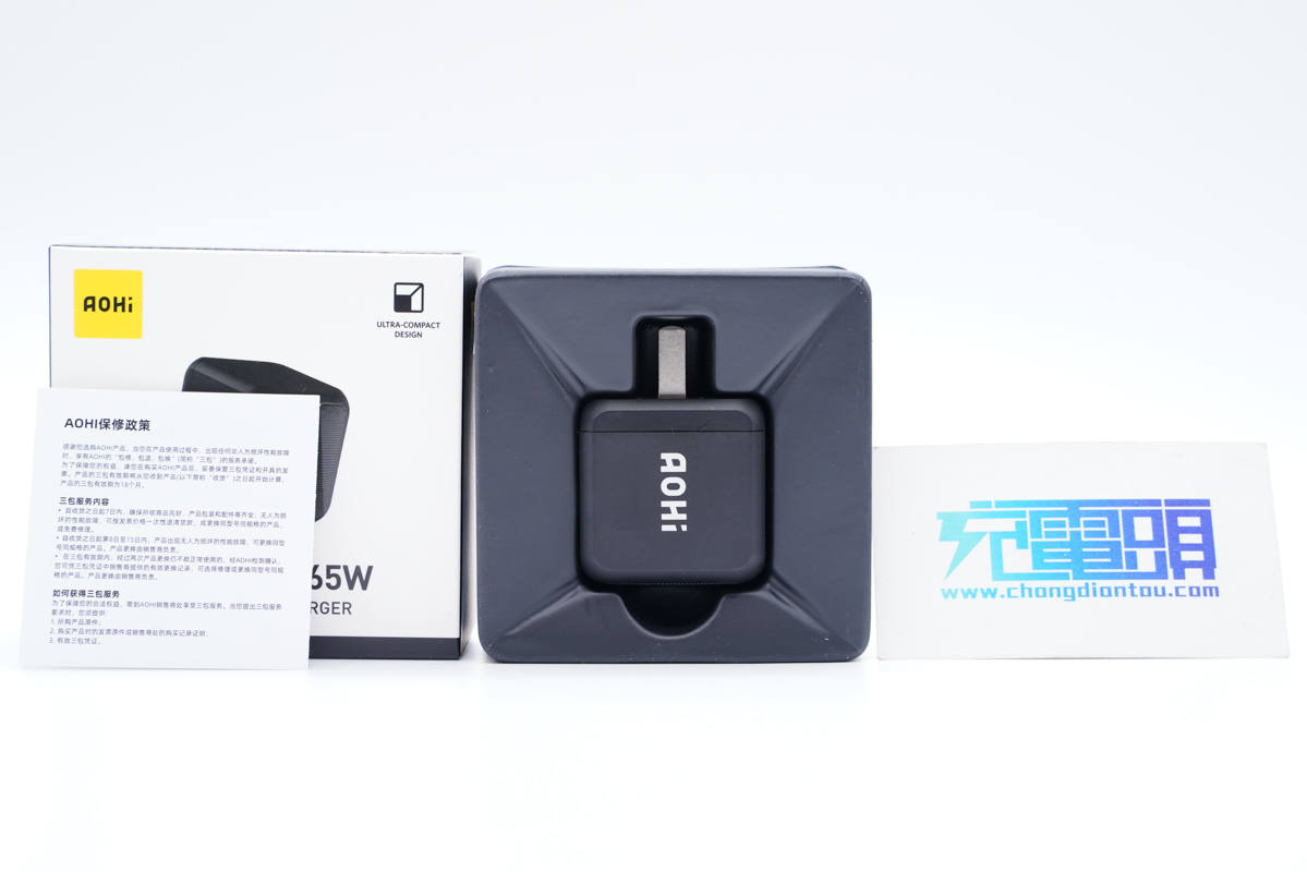 近期,Aohi Magcube系列又出新品,和前面提到的两款相比,整体外观并没有什么变化,只是体积大了一点,最大输出65W,支持PPS快充。这款充电器设计上是为了满足消费者对中高功率小体积充电器的需求,可以给笔记本电脑快充,向下也能满足手机、平板等设备充电需求。下面充电头网就对奥海新款65W氮化镓充电器进行详细拆解,看看设计用料如何。