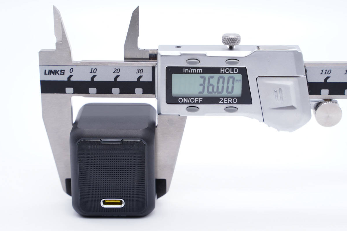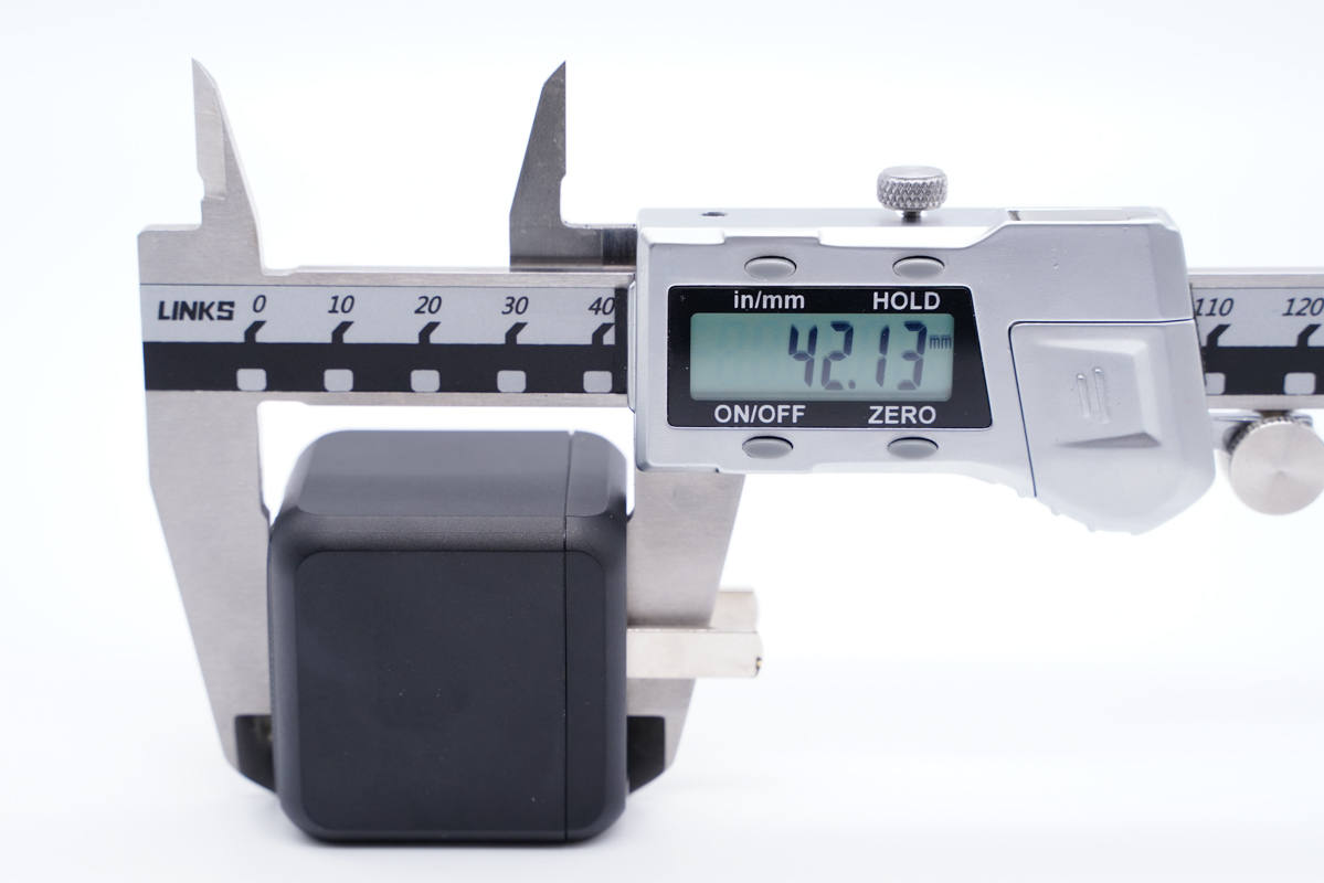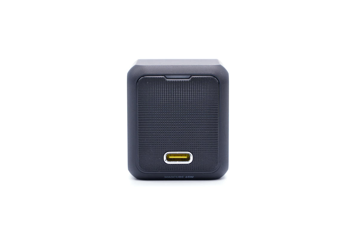 Aohi这款Magcube 65W氮化镓快充充电器外观上延续Magcube系列ID设计,整体尺寸42*36*41mm,功率密度1.05W/cm³,虽说没有像Magcube 30W氮化镓迷你充那样一举夺魁,但也是做得相当小了,整体小巧精致。