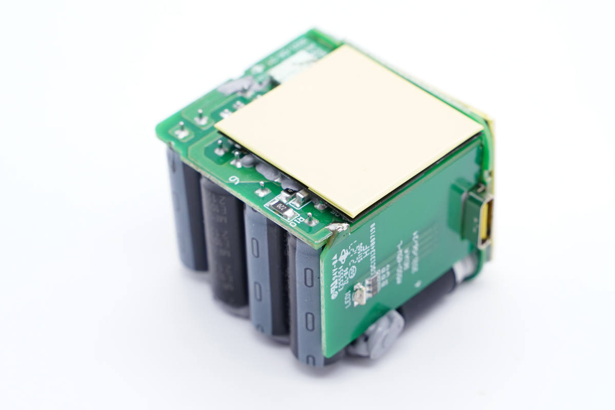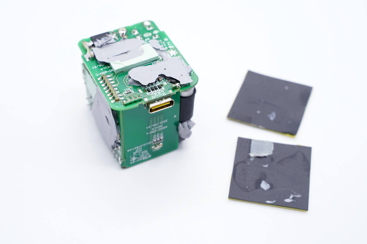 PCBA模块由三块小板堆叠设计,元器件间的空隙填充导热胶帮助固定和散热。