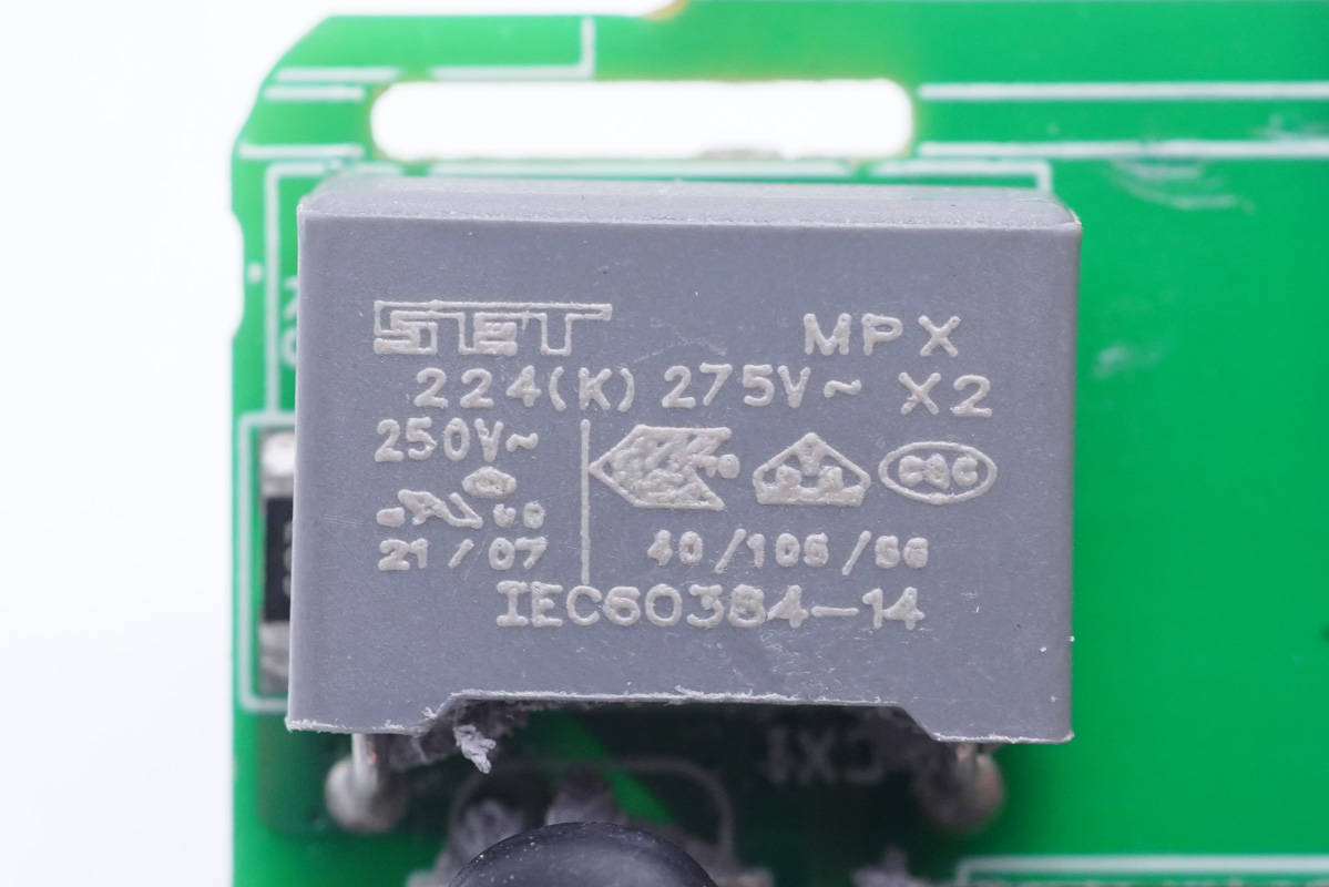 输入端设有隔离板,共模电感外套绝缘管,安规X电容横置。