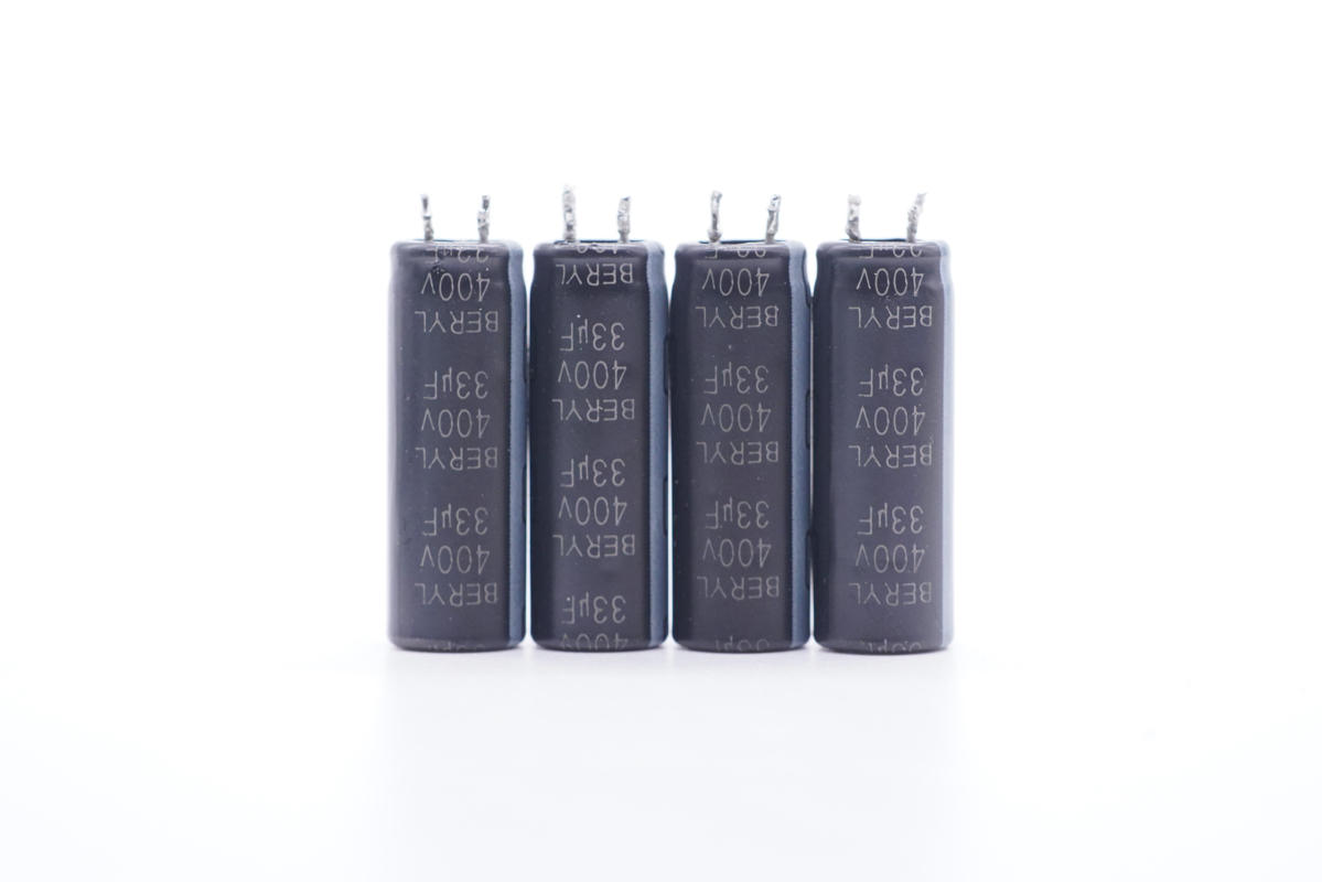 四颗高压滤波电解电容来自绿宝石,规格均为400V 33μF,满足宽范围交流输入。