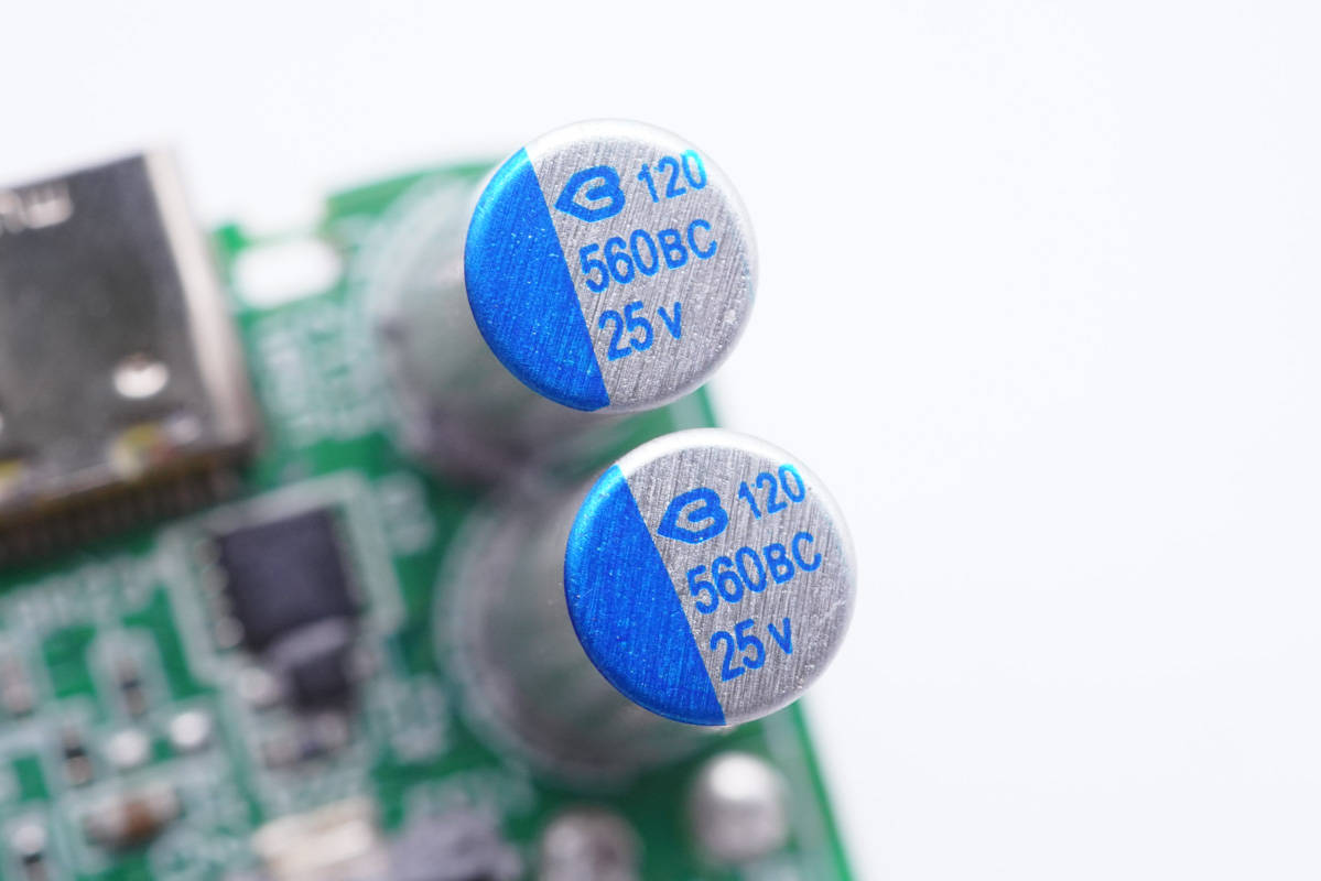 输出滤波固态电容也是来自绿宝石,规格均为25V 560μF。
